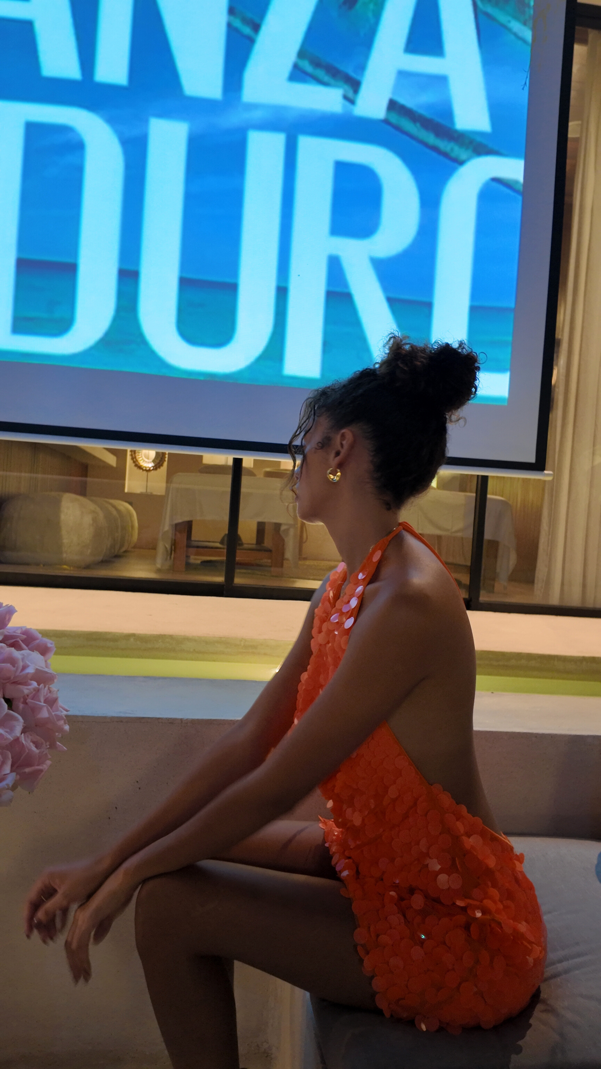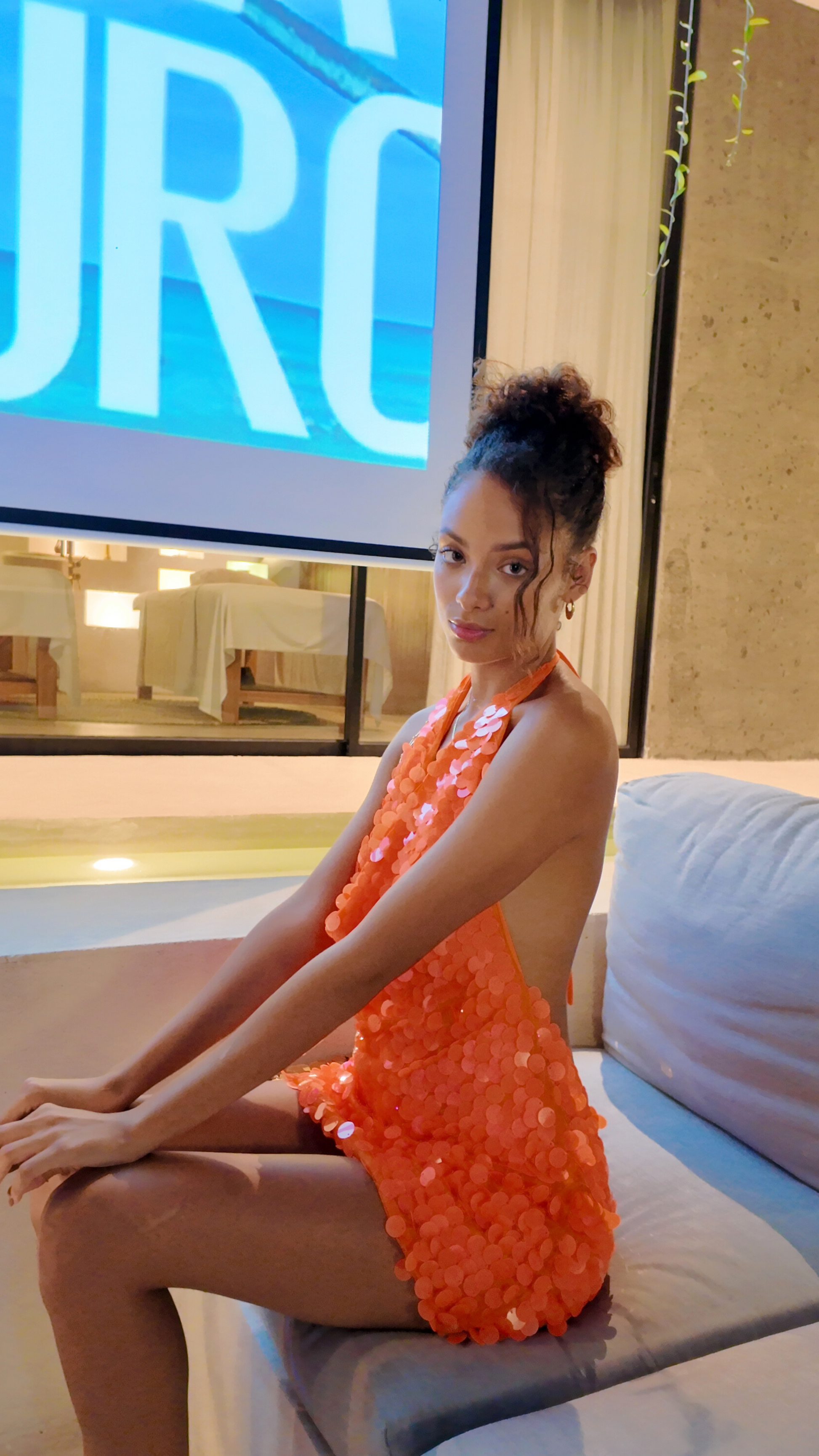 Tangerine Crush Sequin Halter Mini Dress