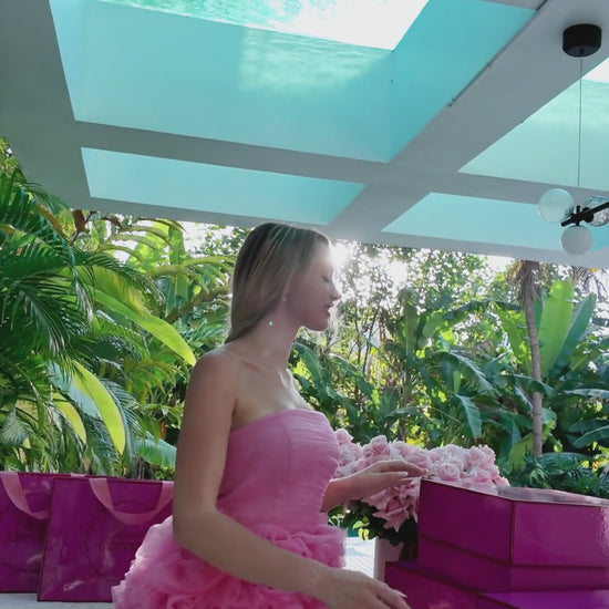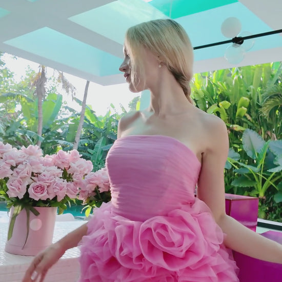 Step into a realm of timeless enchantment with the Tulle Blossom Dream Dress, our most special creation that embodies the essence of romance and whimsy! Imagine wearing this breathtaking piece to a magical garden wedding where petals fall gently around you, a heartfelt anniversary celebration filled with tender moments, or a twirl under the moonlight on a dreamy evening by the seaside. This stunning strapless mini dress is a masterpiece of delicate craftsmanship, featuring multiple layers of soft pink tulle ruffles that cascade like blooming blossoms, each layer meticulously gathered to create a voluminous, cloud-like silhouette that sways with every step. The bodice is expertly tailored with a smooth, structured design that offers gentle support, ensuring a comfortable yet flattering fit that accentuates your natural grace. The tulle itself is lightweight and airy, adorned with subtle hand-placed gathers that add depth and texture, while the soft, comfortable lining beneath provides a silky touch against the skin, making it ideal for all-day wear. Style it with delicate ballet flats and a pearl choker for an ethereal, fairy-tale glow, or elevate the look with strappy high heels and a satin clutch for an elegant night out that turns heads. For an extra touch of magic, consider adding a floral crown woven with fresh blooms, a sheer shawl that drapes softly over your shoulders, or even a pair of dainty anklets to highlight the dress’s playful charm.